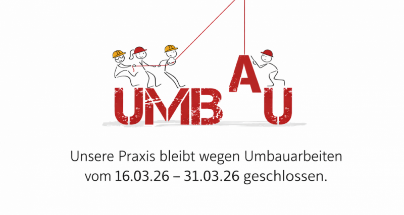 Unsere Praxis bleibt wegen Umbauarbeiten vom 16.03.2026 bis einschließlich 31.03.2026 geschlossen